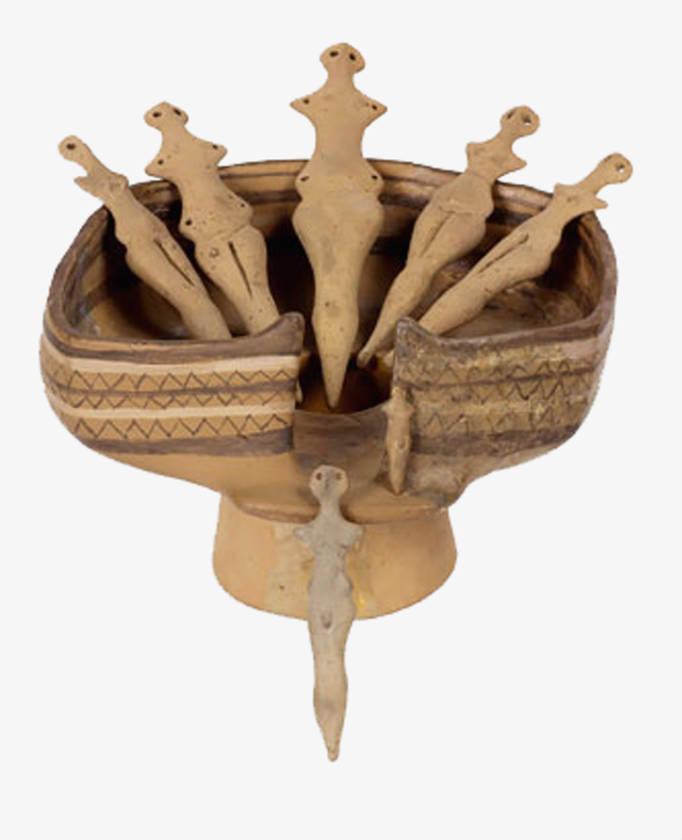 That women had a place of honor in this culture seems secure. All homes had these figurines; archaeologists have found hundreds of them, sometimes as much as seventy in a single dwelling. They were products of the home—made in the home, belonging to the family. Children could have made these figures with their mothers, styling them as they liked. They have also been found placed underneath homes, like a charm bringing warmth to the hearth. They were sacred, but in a way that you could hold, touch, and play with.