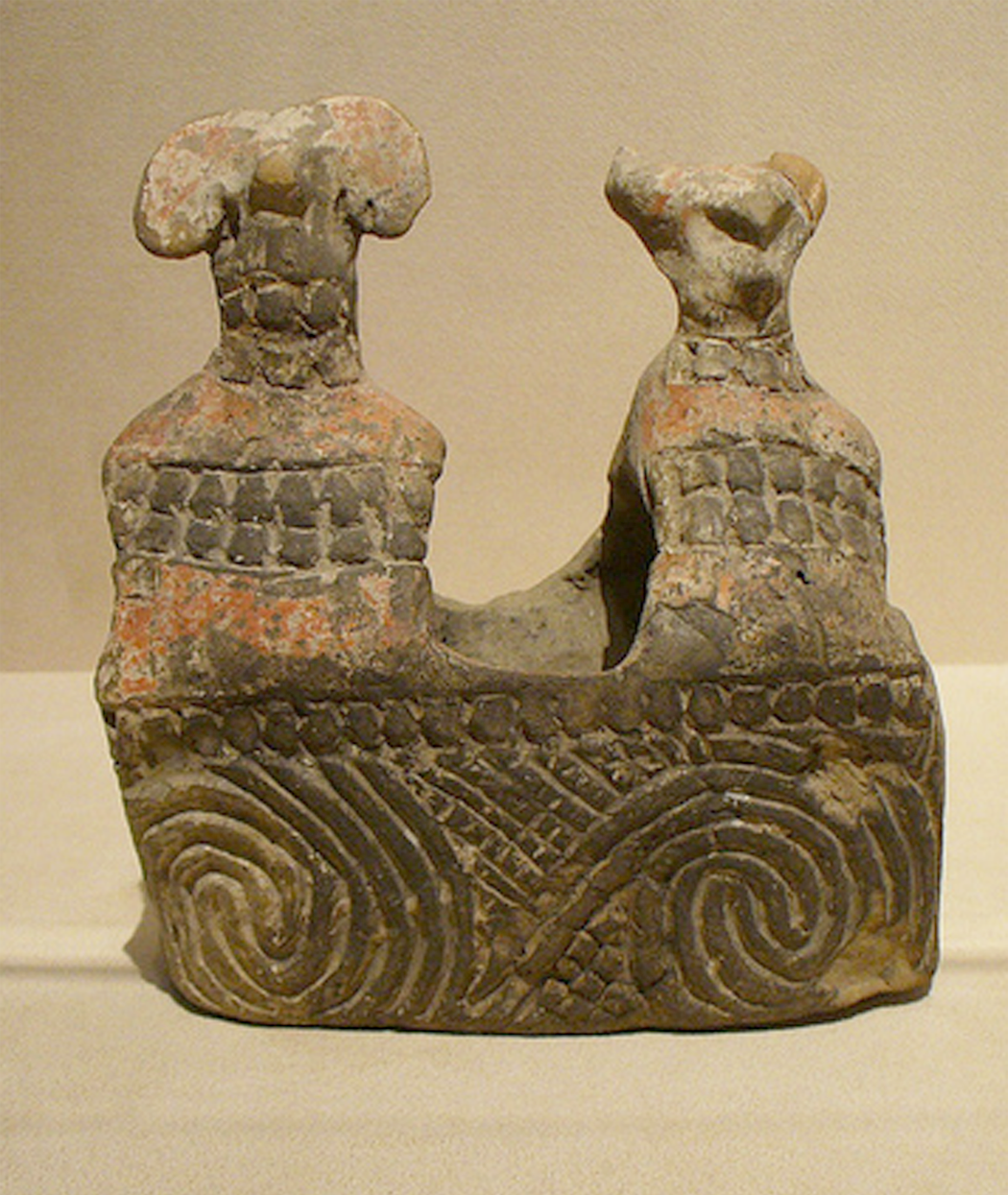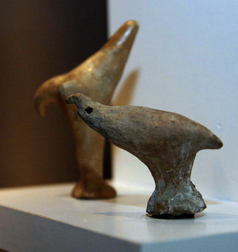 The figurines cannot be given only one interpretation. There are bird, bull, ram, bear, dog, goat, turtle, hedgehog, and other undefinable zoomorphic figurines that came straight from the imaginations of the sculptors. Some look like toys, some like the aesthetic bric-a-brac we place on our shelves. But there are some that have an aura that puts them in a different realm—look at the otherworldly beauty of the bird goddess figures in the photo.