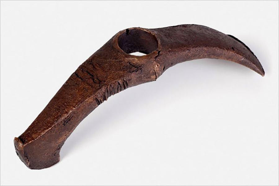 [W]ere excavated at eleven different places into a rich vein of malachite contained in limestone, marl, and diorite. The mines were open trenches cut into the rock, ten to eighty meters long and three to ten meters wide. ...in some places they reached twenty or even thirty meters (more than ninety feet) in depth.... Tools discarded in the trenches included more than twenty fragmented picks made from red-deer antler, very large hammer stones, and two heavily used cast copper tools, a hammer-axe and an axe adze. ...[The] mines likely were operating by about 5000 BC. (Pernika & Anthony, Lost World, p.170)