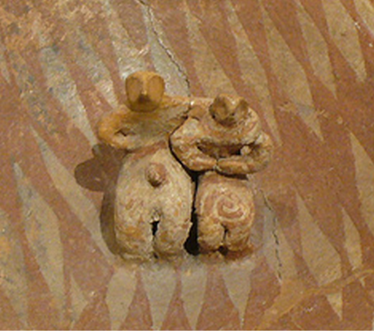 In honor of Rodin, let’s call the 7000-year-old couple above The Thinkers. Are they just thinking? Or mourning? They’re Europeans. Their facial expressions, their elongated necks, their heads tilted wistfully upwards, their attentive miens tell two tales. The first is the experience of the subjects, lost in thought and sorrow; the second is the consciousness of the prehistoric artist who sculpted these figures with such poignant focus. I’m far from the first to call these figures The Thinkers, but in fact it was my first thought when I saw them. This couple is genuinely modern. They are us.